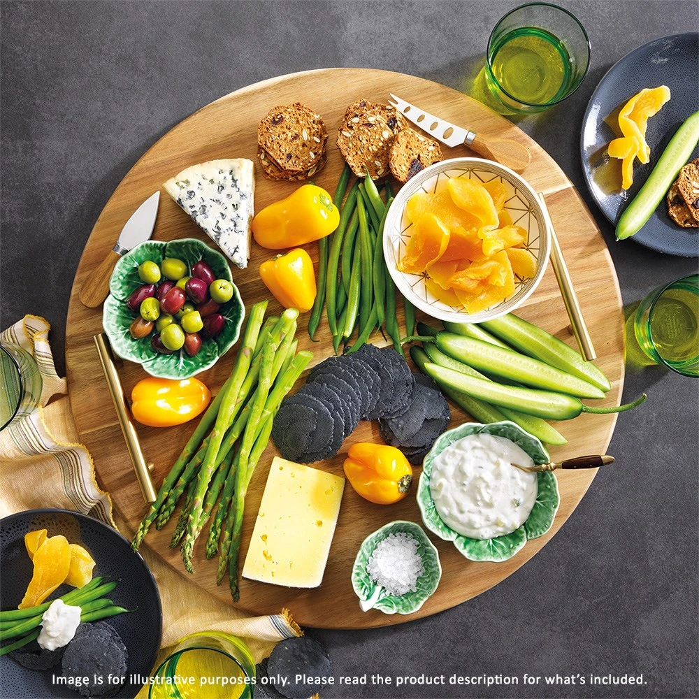 Set a stunning and inviting table for your friends, family and guests to enjoy a selection of delicious treats with the Alex Liddy Acacia Round Serving Board. This beautiful serving piece is crafted from the finest quality acacia wood with a rich natural finish that add a touch of modern sophistication to any table setting. Fitted with gold plated handles, the Alex Liddy Acacia Round Serving Board is easy to transport from kitchen to table, ensuring mess and hassle is minimised completely. With its large, generous surface size, the Alex Liddy Acacia Round Serving Board is suitable for serving a wide assortment of appetisers, such as tapas, slices, cheese and more. Easy to clean, the Alex Liddy Acacia Round Serving Board is hand wash only.