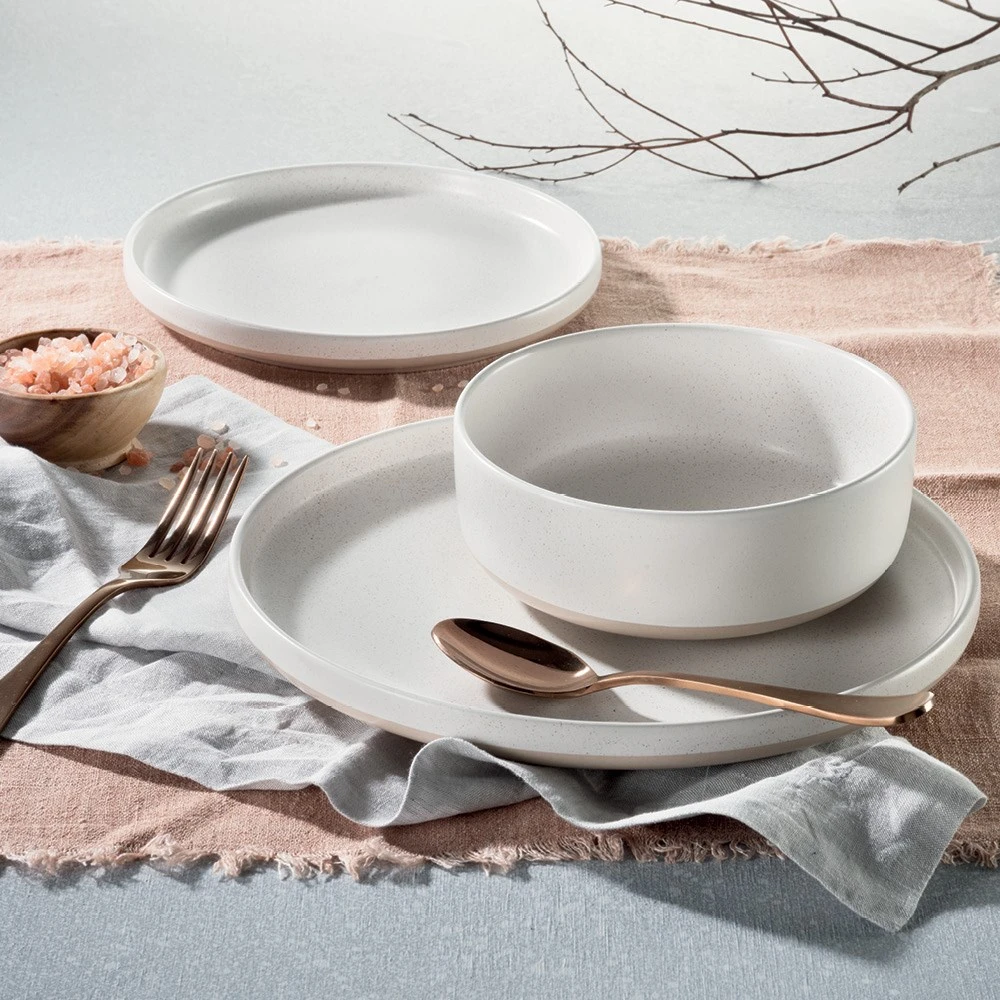 Elevate your dining experience with the Alex Liddy Nora 12 Piece Dinner Set White. Made from premium stoneware, this set includes four dinner plates, four side plates and four bowls. This high-quality dinner set offers longevity as well as a stunning unique design. The Alex Liddy Nora 12 Piece Dinner Set White features a matte reactive stoneware that naturally creates an enhancing speckle design. The organic shapes of the remarkable dinnerware are intended to reflect modern everyday dining and entertaining. Boasting a brilliant white colour scheme, the Alex Liddy Nora 12 Piece Dinner Set offers a wonderful backdrop for your culinary creations. This stoneware dinner set is spectacular solo but also a perfect to mix and match to effortlessly create a unique style.