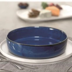 - Rich blue colourway finished in a sleek glossy glaze is perfect for pairing with bold accent pieces or crisp whites