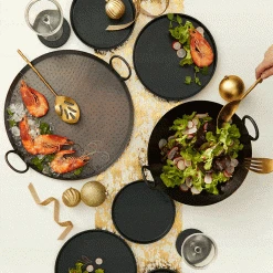 A versatile piece that will last for years to come, the Alex Liddy Slate & Co Round Feast Tray is the perfect serving piece. Crafted from food-safe iron with nickel, this round tray has a stunning metallic black finish with rippled detailing for a polished look. The Alex Liddy Slate & Co Round Feast Tray is ideal for serving and displaying your favourite cocktail pieces, or for enjoying the creamy brie on a cheese board! Packaged for gifting, the Alex Liddy Slate & Co Round Feast Tray is great for weddings, birthdays, anniversaries, and more. Variations in the colour and texture of each piece makes every feast tray l a singular work of art. Extra cleaning and care may be required to retain the performance, efficiency, and lifespan of this item.