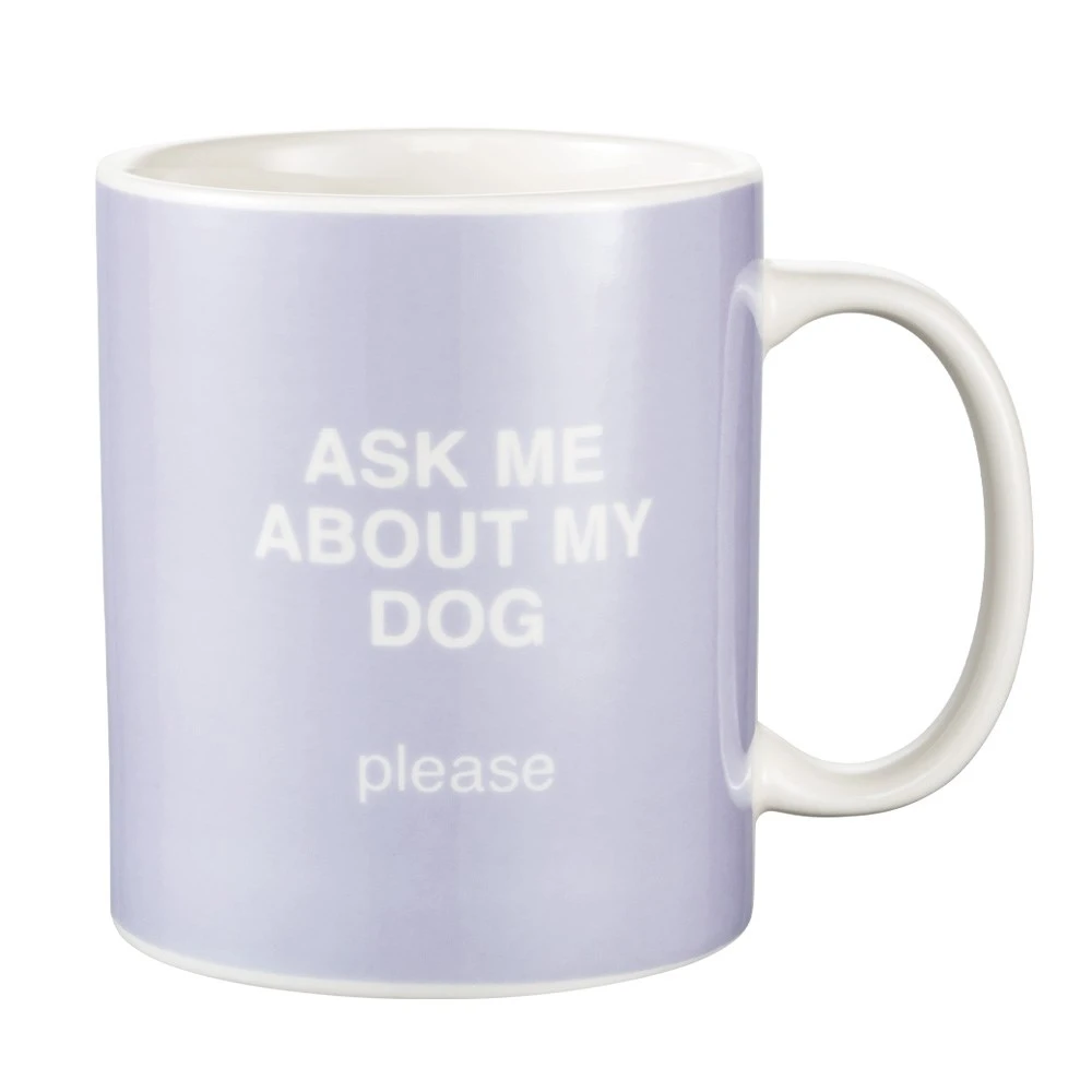 - Novelty mug featuring a fun quote: ASK ME ABOUT MY DOG please
