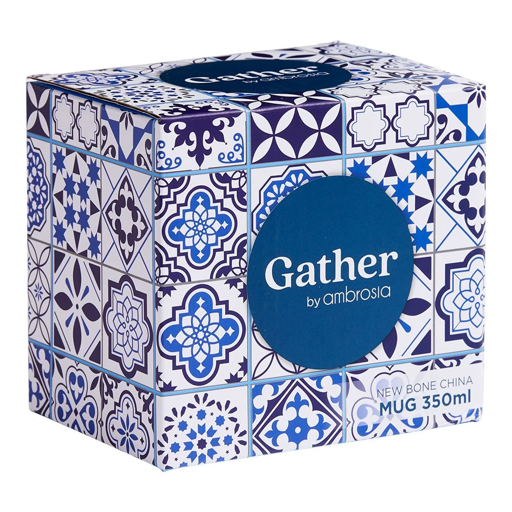 Inject some personality into your everyday mug with the Ambrosia Gather 350ml Mug. Perfect for someone who loves modernised geometric tile design in an assortment of blues, the mug arrives boxed making it a great present for any housewarming or birthday. This mug has been expertly crafted from the finest quality New Bone China for ensured durability and appeal over time. Thanks to the sturdy construction, the Ambrosia Gather Mug will keep your hot tea, coffee, or hot chocolate at its optimal temperature so that you can kick back and enjoy without a care in the world. Complete the look by pairing the Mug with the Ambrosia Gather Coaster Set and Placemat Set or mix and match with contrasting prints for a unique look.