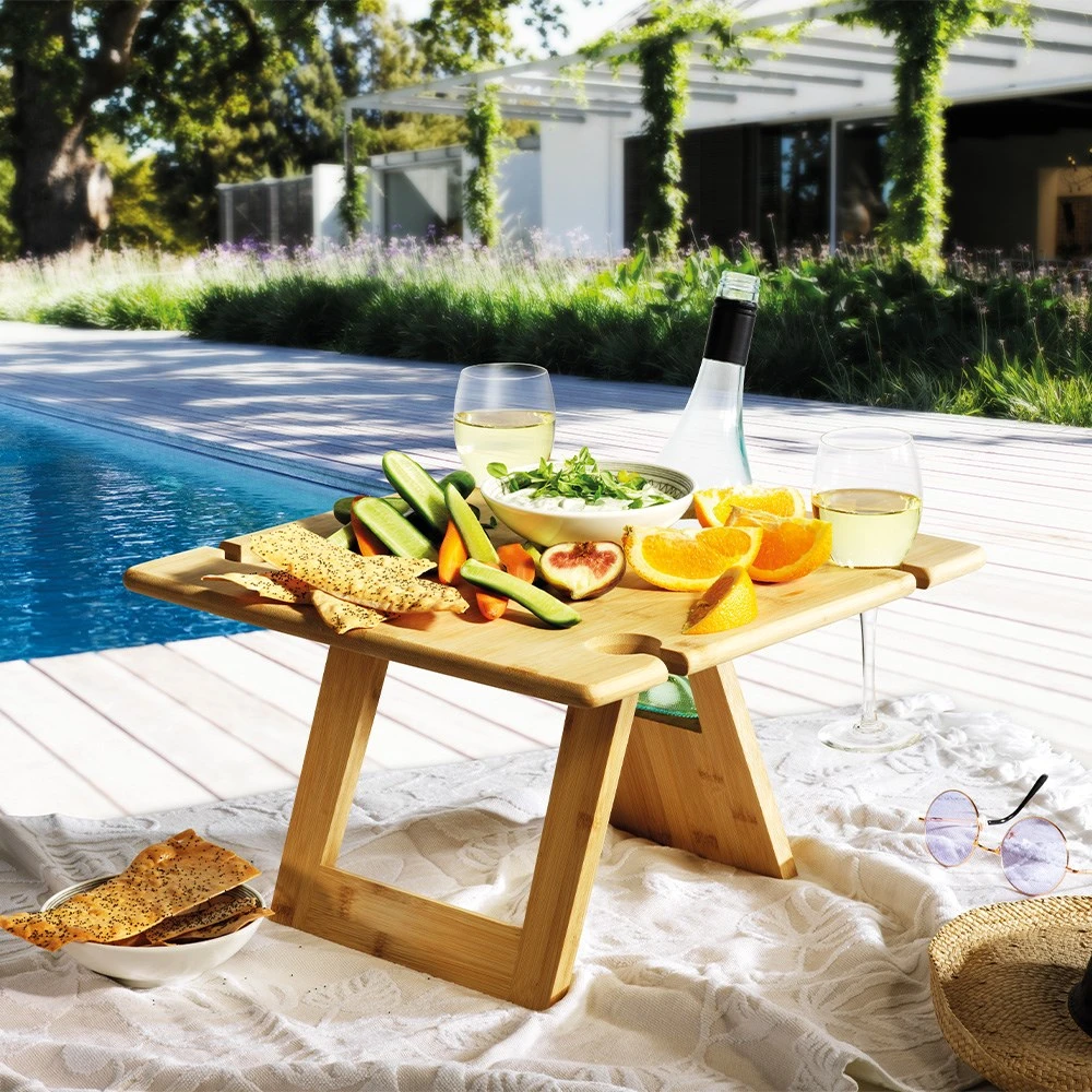 Enjoy a selection of your favourite treats in the park, at the beach, or in the backyard with the Ambrosia Karira Bamboo Picnic Table 40cm