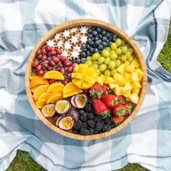 Soak up the sun with a bottle of wine, your closest friends and a grazing platter served on the Ambrosia Karira Picnic Tray. This stylish and convenient serving accessory is crafted from naturally sturdy bamboo, making it a better alternative to harmful and flimsy plastics or heavy, clunky picnic gear. Lightweight and durable, the Ambrosia Karira Picnic Table is the perfect serving piece. With its large size, the Ambrosia Karira Picnic Table is perfect for serving up bowls and plates of dip, cheeses, fruits, pickles and other bite-sized appetisers! Sturdy legs keep it secure while in use and fold flat for compact storage, making it easier to transport than standard alternatives. Easy to clean, the Ambrosia Karira Picnic Table can simply be washed by hand. Packaged for gifting, the Ambrosia Karira Picnic Table is an excellent gift for weddings, birthdays, and other events.