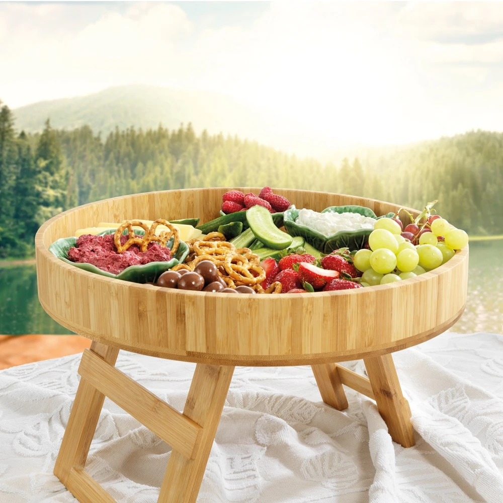 Serve a wide assortment of snacks and nibbles for a weekend chill session or formal dining event with the stunning Ambrosia Karira Bamboo Picnic Tray Table