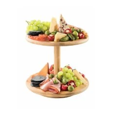 Create a showstopping, centrepiece grazing selection with the Ambrosia Karira Two Tier Bamboo Lazy Susan 30cm