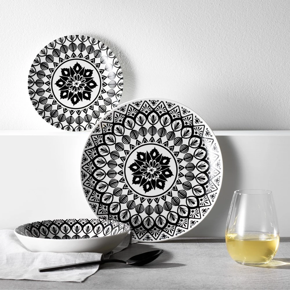 The Ambrosia Lena II Dinner Set is a great way to upgrade your dining experience. This set provides a refined touch to the table and is suitable for both casual everyday meals and formal celebrations. It is composed of high-quality porcelain for long-lasting durability and appeal. With its unique Aztec black and white pattern, this dining set is a fantastic backdrop for your wonderful culinary delights. It has nicely designed plates that are perfect for plating your masterpieces and can comfortably accommodate a group of four. The Ambrosia Lena II 12 Piece Dinner Set, presented in a nice box, makes a great gift for housewarmings, birthdays, and other special occasions.