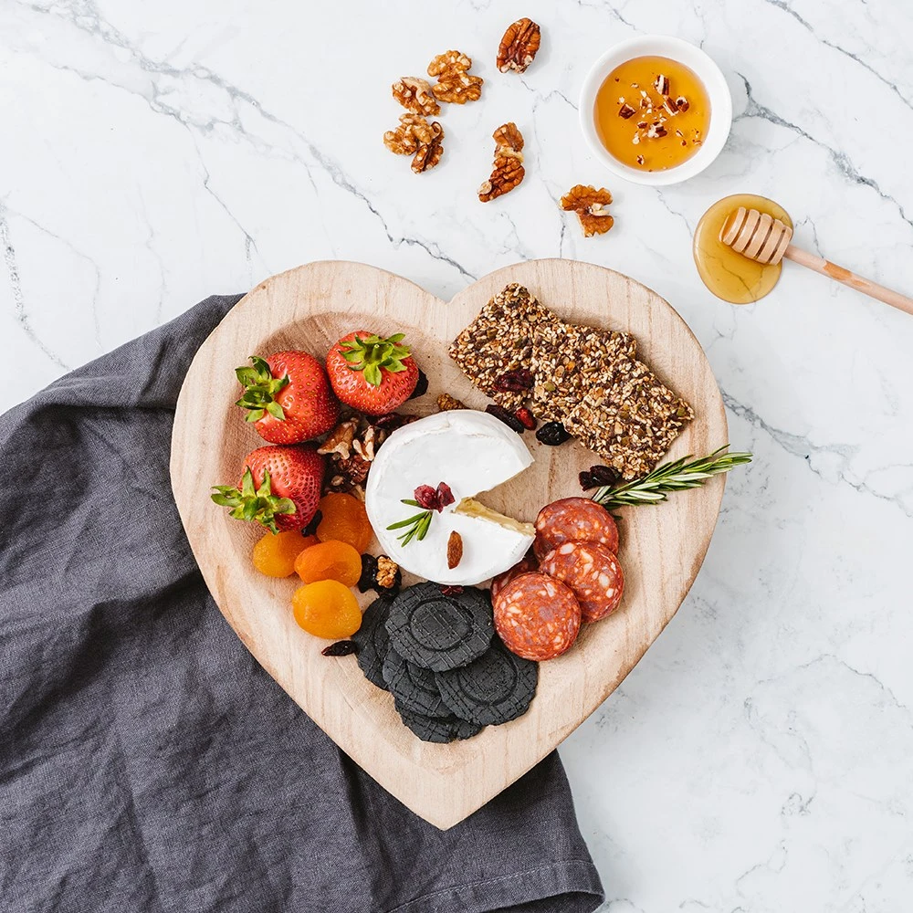 Serve an assortment of your favourite appetisers, fresh fruits, tapas and snacks on the Ambrosia Rustic Paulownia Wood Heart Tray.