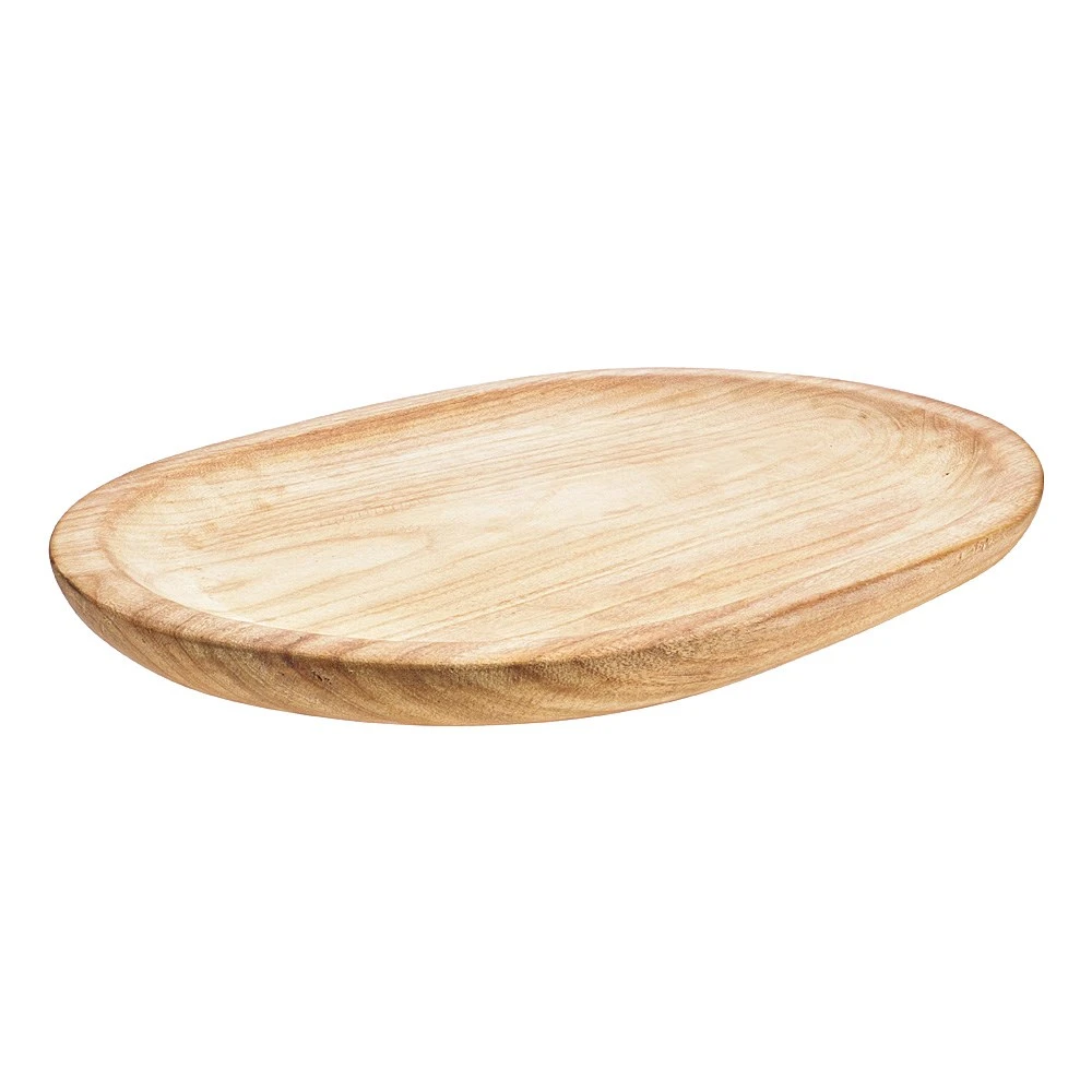 Treat your dinner guests to a selection of delicious cheeses, cold meats and crackers served on the stylish Ambrosia Rustic Oval Serving Tray! Made from entirely paulownia wood, this serving piece is designed for long lasting durability and appeal. The natural wood aesthetic offers a beautiful backdrop for all kinds of culinary creations and coordinates well with any existing tableware. This versatile piece doubles as a centrepiece for your dining table and looks great filled with fresh fruit, baubles or other decorations. Generously sized, the Rustic Oval Serving Tray by Ambrosia is fantastic for entertaining party guests at home. It makes a delightful gift for housewarmings, birthdays and other special occasions and is a wonderful way to upgrade your serve ware collection. To care for this high-quality serving tray, simply hand wash.