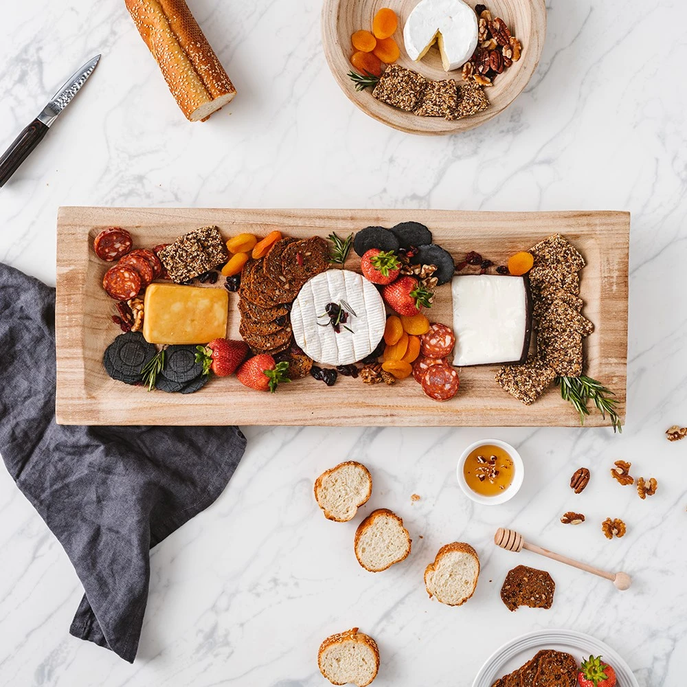Impress your guests with a selection of delicious cold meats, cheeses, crackers and more, served in style with the Ambrosia Rustic Paulownia Tray 62 x 24cm!