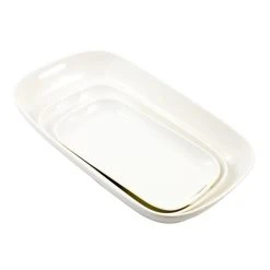 The Ambrosia Zest 40cm Rectangular Tray is great for serving your guests in style at every party or function you are hosting! Made from top quality new bone china, the tray will look fantastic on the kitchen or dining table. The Ambrosia Zest 40cm Rectangular Tray has handles designed for easy carrying and they are dishwasher friendly for quick clean up; giving you complete freedom to use it however you like stress-free!