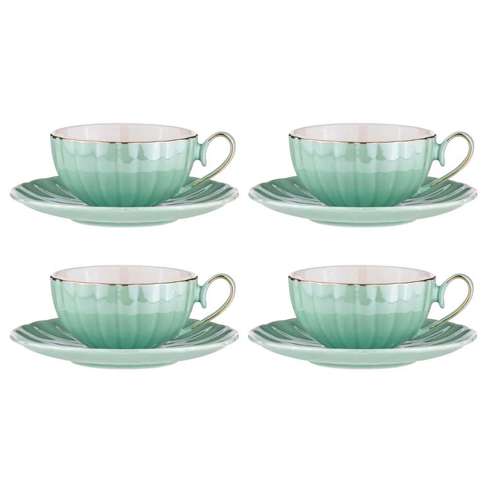 Infuse your tabletop with the chic French elegance of the Ashdene Parisienne Pearl 4 Piece Cup & Saucer Set Aquamarine