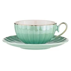 With the stunning Ashdene Parisienne Pearl Cup & Saucer 220ml Aquamarine, you can recreate the magical atmosphere of an opulent French tearoom. Made of elegant new bone china, this Ashdene Parisienne Pearl Cup & Saucer 220ml Aquamarine boasts graceful curves and subtle scallops that catch the light thanks to its striking turquoise-blue, pearlescent finish. Thanks to its gilded gold handle and rims, this cup & saucer is a must-have for hosting chic tea parties or giving as a stylish gift. The Ashdene Parisienne Pearl Cup & Saucer 220ml Aquamarine combines beautifully with other exquisite pieces from the Parisienne Pearl collection. Parisienne Pearl is available in a sweet selection of complementary pastels.