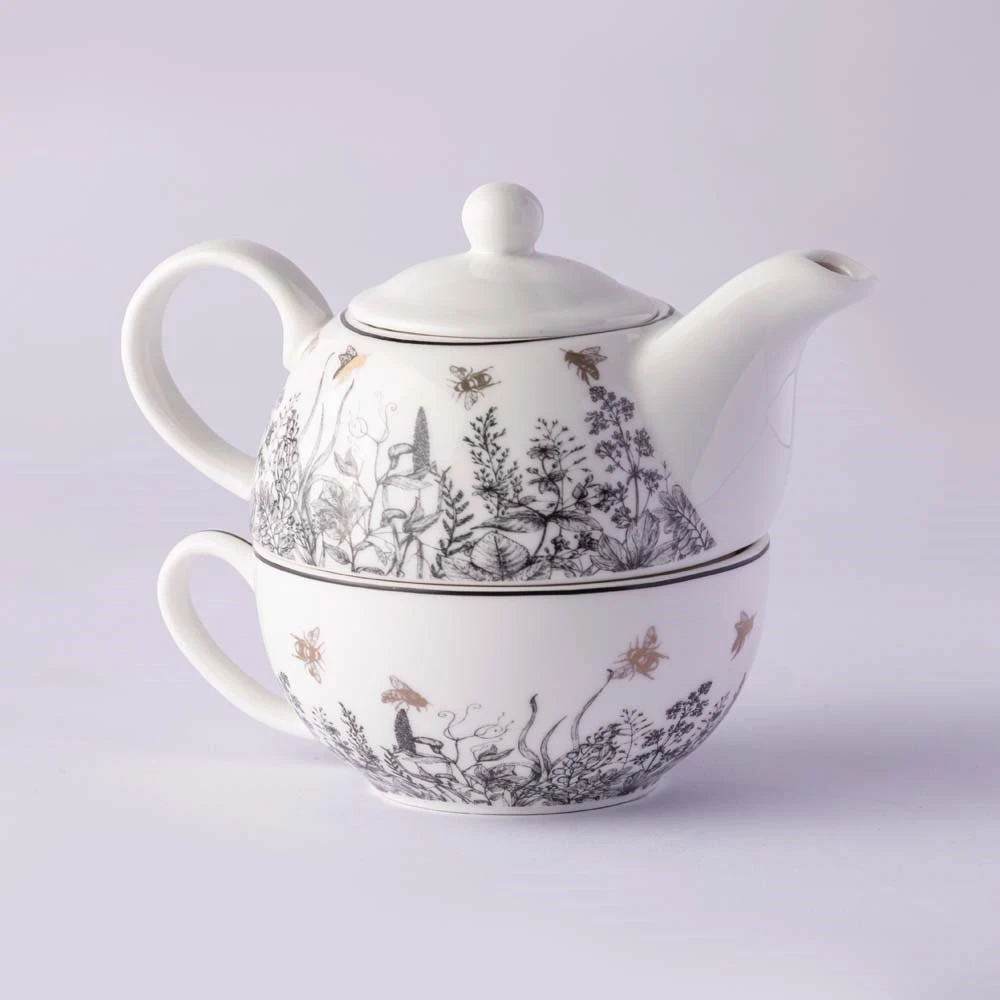 Enjoy an uninterrupted solo tea time with your favourite leaves steeped and sipped using the gorgeous Ashdene Queen Bee Tea for One 250ml. The rich black motif, showcasing an intricate, fine-point illustration of wildflowers, stands out in contrast atop the pure white backdrop. The classic new bone china construction of the Ashdene Queen Bee Tea for One 250ml offers refined style alongside optimum durability, while the stainless steel infuser delivers lasting durability. Graced with metallic gold honeybees at enchanting intervals, it’s hard to beat the unique design and luxury aesthetic of this tea for one set. For a beautifully curated teatime, pair the Ashdene Queen Bee Tea for One 250ml with more equally impressive pieces from the Queen Bee line. Packaged in a coordinating box, it makes a fantastic gift for tea-centric friends and loved ones.