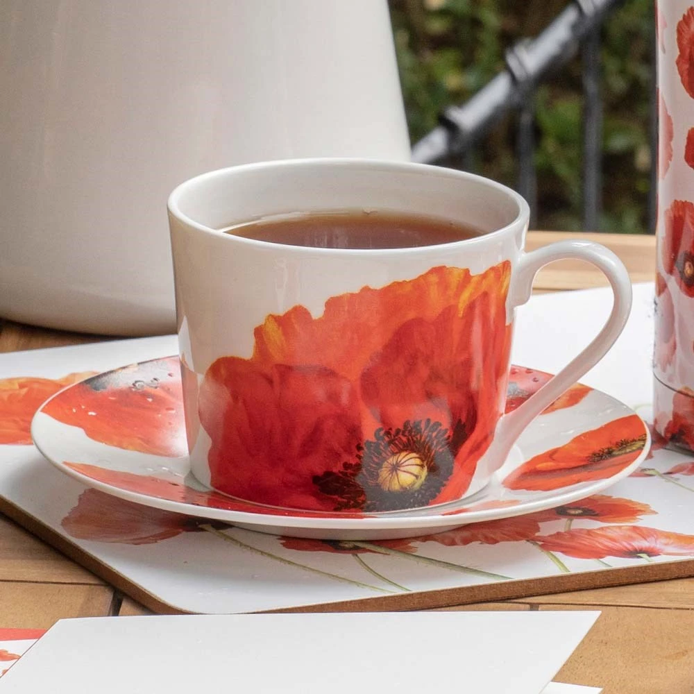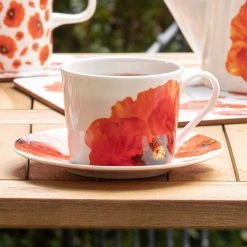 Adorn your tabletop with the beauty of the Ashdene Red Poppies Cup & Saucer Set Of 4 250ml
