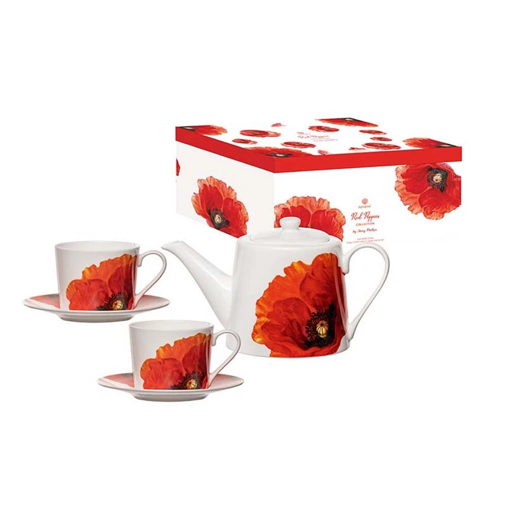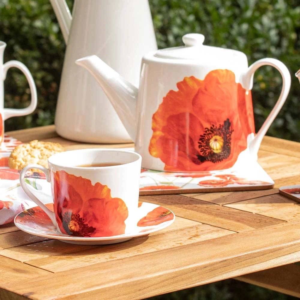 Catch up with a friend over tea served with the stunning Ashdene Red Poppies Teapot & 2 Teacup Set