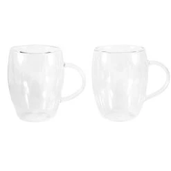 Serve and enjoy delicious creamy hot chocolate in the evening with the stylish Baccarat Barista Caf? 2-Piece Double Walled Thermal Glass Mug Set! Perfect for catching up with a friend over coffee at home, this two-piece set comprises of two premium quality double walled thermal glass mugs, designed to insulate hot or cold beverages. With a touch-friendly design, these glasses are crafted using thermal resistant glass and are designed so that you are able to pick up the mug without feeling the heat or cold of the liquid inside. Each glass features a generously sized ?stay-cool? handle, perfectly suited to all hand sizes making carrying the Barista Caf? Mugs simple. Caring for these high-quality mugs is simple as they are dishwasher safe for your convenience. Indulge in your favourite hot or cold beverages in fresh and contemporary style with the Baccarat Barista Caf? 2-Piece Double Walled Thermal Glass Mug Set!