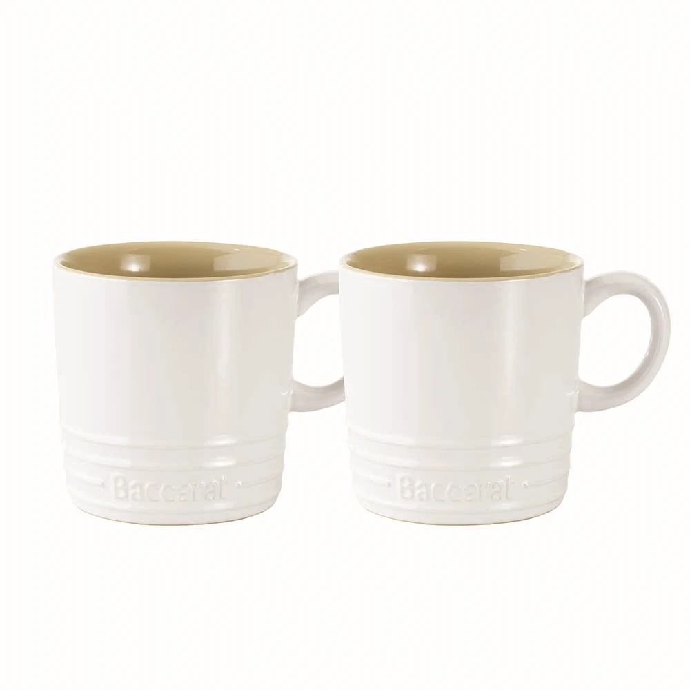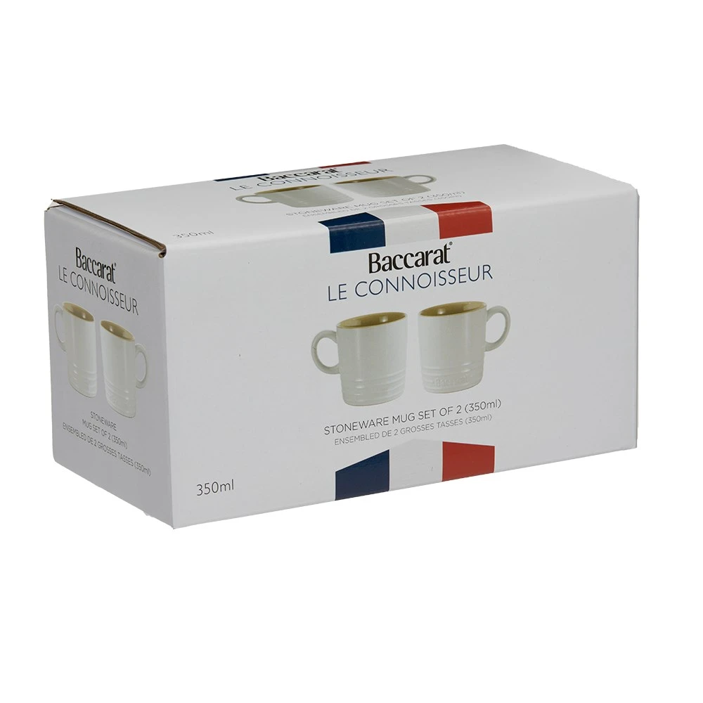 Enjoy your morning cup of coffee the French way with the Baccarat Le Connoisseur Set of 2 Mugs 350ml in White. The Le Connoisseur range is inspired by the Parisian aesthetic and will have your coffee tasting like you’re sipping it from inside Café de Floré. The perfect size for a cup of coffee, tea, or hot chocolate, these mugs will complete your kitchenware collection. Made from high-quality and durable stoneware, the mugs are finished with an attractive white glazing, pairing well with any kitchen aesthetic. The mugs also make an ideal gift for coffee lovers, coming beautifully boxed. They’re easy to clean and are dishwasher safe for your convenience. Pairs well with the matching Baccarat Le Connoisseur Espresso Set of 2 90ml in White, sold separately.