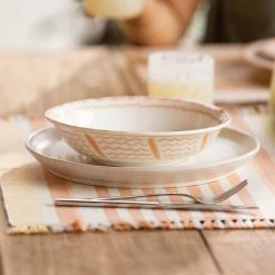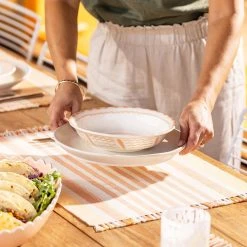 Lay your table with the essence of summer in the form of the beautiful Ecology Arizona Dinner Bowl 22cm. Designed in Australia by Heather Piez with inspiration from dry desert days and warm evenings, the Ecology Arizona Dinner Bowl 22cm uses radiant yellow and orange hues to represent the powerful heat of the sun. Crafted from quality stoneware, this resilient dinner bowl offers a classic body and mildly organic silhouette with tactile features that add texture to the table setting. The refreshing, light, creamy background is adorned with colourful arched motifs that mimic the movement of the ever-rising and setting sun to provide the perfect backdrop for mouth-watering pasta and risotto dishes, as well as other nourishing grain based bowls and salads . Pair the stunning Ecology Arizona Dinner Bowl 22cm with other tableware items from the Arizona range to create a flawless summer alfresco dining atmosphere.