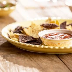 Lay your table with the essence of summer in the form of the beautiful Ecology Arizona Dip Bowl 12cm. Designed in Australia by Heather Piez with inspiration from dry desert days and warm evenings, the Ecology Arizona Dip Bowl 12cm uses radiant yellow and orange hues to represent the powerful heat of the sun. Crafted from quality stoneware, this resilient dip bowl offers a classic body and mildly organic silhouette with tactile features that add texture to the table setting. The refreshing, light, creamy background is adorned with colourful arched motifs that mimic the movement of the ever-rising and setting sun to provide the perfect backdrop for tasty dips like salsa or guacamole to serve alongside chips and other nibbles. Pair the stunning Ecology Arizona Dip Bowl 12cm with other tableware items from the Arizona range to create a flawless summer alfresco dining atmosphere.