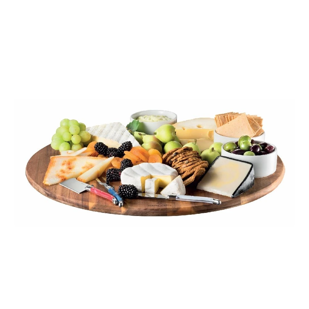 - Set includes 1 x 50cm diameter serving board, 3 x knives, 3 x ceramic bowls