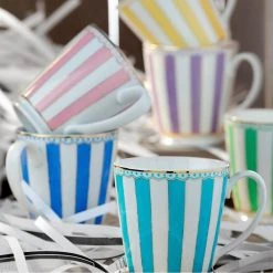 Up the elegance at your next tea party with the Noritake Carnivale Mug 370ml Pink. Combining a chic French design aesthetic with vibrant pastel colour, the Noritake Carnivale Mug 370ml Pink creates a fun yet sophisticated atmosphere. Made from premium, chip-resistant porcelain, this mug, with its elegant, curved handle, is a pleasure to sip your favourite hot beverages from. Festival-inspired pink and white vertical stripes grace the exterior, elevated by an opulent 22k gold lining. Available in a selection of gorgeous colours, the Noritake Carnivale Mug 370ml can be mixed and matched to build the perfect set. This mug is dishwasher safe and presented in a stylish box for effortless gifting.