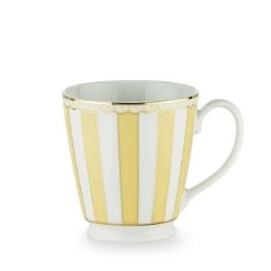Up the elegance at your next tea party with the Noritake Carnivale Mug 370ml Yellow. Combining a chic French design aesthetic with vibrant pastel colour, the Noritake Carnivale Mug 370ml Yellow creates a fun yet sophisticated atmosphere. Made from premium, chip-resistant porcelain, this mug, with its elegant, curved handle, is a pleasure to sip your favourite hot beverages from. Festival-inspired yellow and white vertical stripes grace the exterior, elevated by an opulent 22k gold lining. Available in a selection of gorgeous colours, the Noritake Carnivale Mug 370ml can be mixed and matched to build the perfect set. This mug is dishwasher safe and presented in a stylish box for effortless gifting.