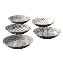 Serve your favourite soup in style using the Noritake Komon Japanese Porcelain 5 Piece Soup Bowl Set 19cm! Fantastic for both casual everyday dining and formal occasions, this set is a versatile addition to your tableware collection. Each bowl is decorated with different intricate designs which offer a wonderful backdrop for your culinary creations and add a touch of visual interest to the table. Made in Japan, the Komon Porcelain Soup Bowls are crafted from fine porcelain which is chip resistant and offers long-lasting appeal. The sophisticated black and white colour scheme coordinates well with any existing tableware and brings a touch of elegance to any dining occasion. Presented beautifully boxed, the Komon Japanese Porcelain 5 Piece Soup Bowl Set makes a delightful gift for housewarmings, birthdays and other special occasions. Mix and match with additional pieces from the Komon range by Noritake for the ultimate collection of eye-catching tableware!