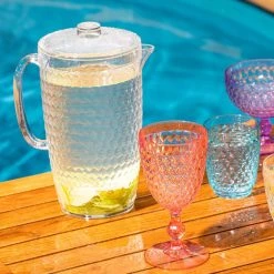 Tate is designed for those who love to spend their summer entertaining outdoors and want to create the perfect table setting! These unbreakable pieces feature a textured geometric design, available in funky colours perfect for days spent by the pool, beach or park. Constructed of durable BPA-free acrylic this jug is built to last and conveniently dishwasher safe making washing up easy. The durable jug is ideal for outdoor drinks with anything from juices to cocktails. Available in 3 amazing colours of Strawberry, Sky and Clear you can cater for a larger party by pairing with the same colour or mix and match with contrasting colours. Complete the outdoor dining experience by combining with the Porta Tate Highball Tumbler.