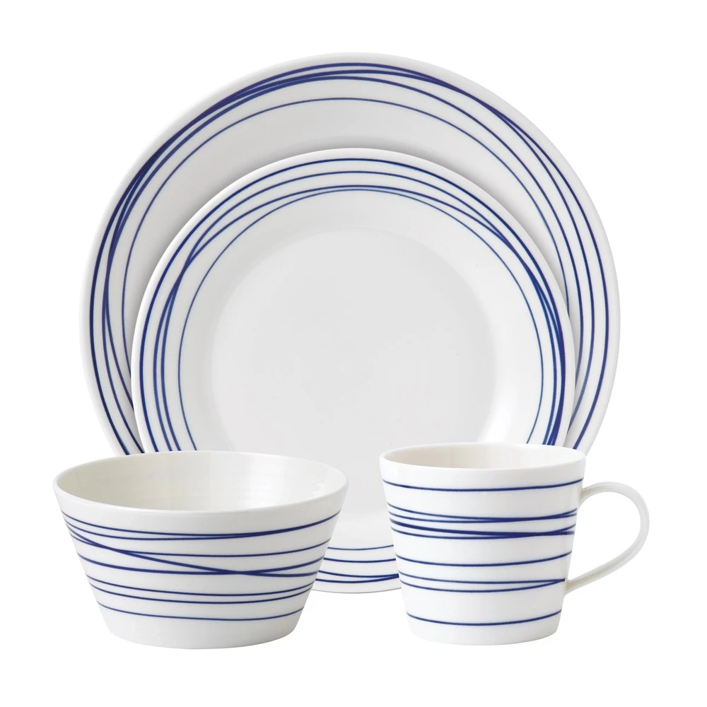 Dine in contemporary style with the coastal inspired Royal Doulton Pacific Mint 16 Piece Dinner Set Lines! Decorated with beautiful fluid lines in inky blue, this dinner set offers the ultimate backdrop for your delicious culinary creations. The set includes four sets of cereal bowls, mugs, dinner plates and entrée plates and is perfect for casual everyday meals for formal dining occasions. Made from high quality porcelain, the Pacific Mint Dinner Set offers enduring appeal and long lasting durability. It comes presented beautifully boxed and makes a delightful gift for housewarmings, birthdays and other special occasions. Ultra-tough and easy to clean, the Pacific Mint Dinner Set is dishwasher safe for your convenience.