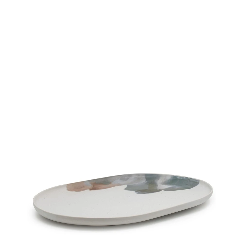 Decorate your table with the creative flair of the Salt & Pepper Leif Platter 40x28cm Green. Utilising the art of digital printing, the Salt & Pepper Leif Platter 40x28cm Green features stunning textural patterns in a beautiful showcase of natural colours. Generously sized, fill the platter with delicious appetizers, charcuterie, or grilled meats to serve a hungry crowd. Crafted from durable stoneware, the platter will stand the test of time and be a staple piece in your collection for years to come with its timeless, modern shape. Finished with a reactive matte glaze, each piece turns out totally unique for a personalised dining experience. Coordinate the Salt & Pepper Leif Platter 40x28cm Green with a selection of other serving pieces from the wonderful Leif range.