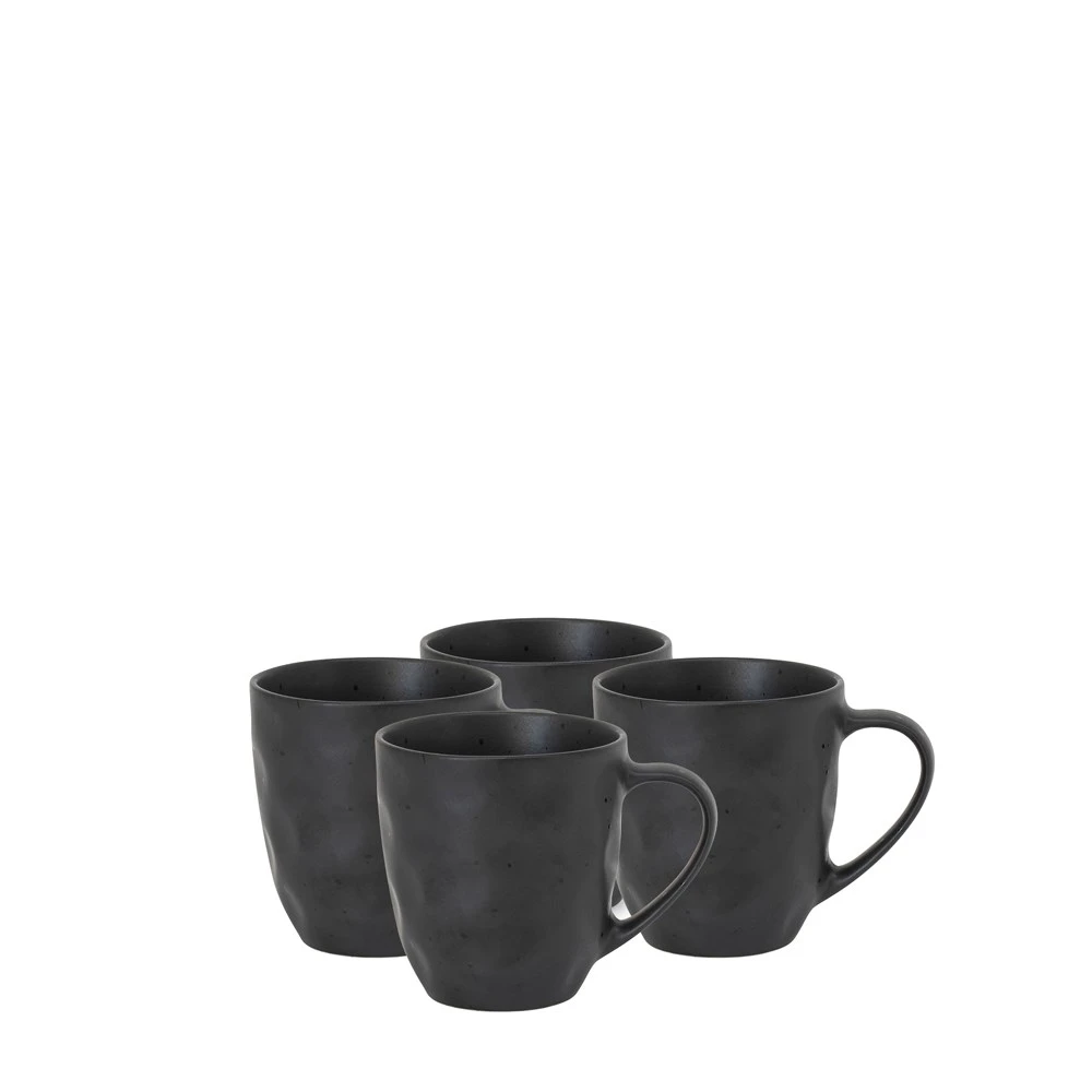 Embellish your tabletop with the stunning Salt & Pepper Napier Set of 4 Mugs 330ml Black. Made from quality stoneware for guaranteed strength and resilience, the Salt & Pepper Napier Set of 4 Mugs 330ml Black showcase subtly dimpled bodies that bring a sophisticated textural element to teatimes. Fill these beautiful mugs with anything from your morning coffee hit, to a late afternoon earl grey, to a relaxing herbal tea before bed and enjoy your hot beverages in style. A matte speckled reactive glaze in a captivating black tone makes these mugs stand out as each piece boasts a wonderfully unique finish. Dishwasher and microwave safe for ultimate convenience, pair the Salt & Pepper Napier Set of 4 Mugs 330ml Black with matching dinner plates, side plates and bowls from the sleek Napier collection.